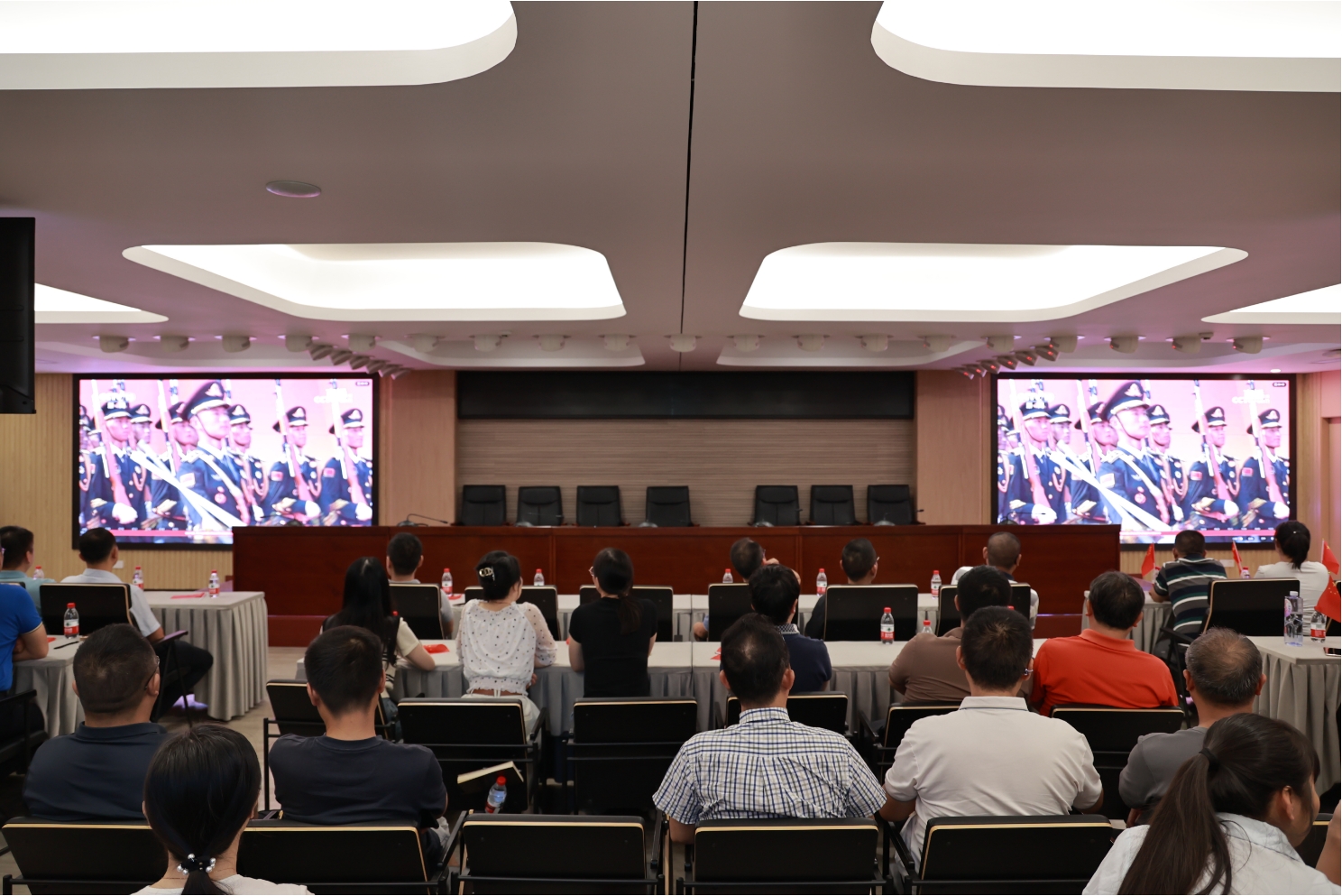 為弘揚愛國主義精神、激發員工民族自豪感,長沙新港公司于9月3日上午9時,在多功能會議室組織全體干部職工80余人集中收看“紀念中國人民抗日戰爭暨世界反法西斯戰爭勝利80周年閱兵式”直播。活動中,全體人員嚴肅認真觀看,隨著受閱方陣整齊的步伐、先進裝備的震撼亮相,現場不時爆發熱烈掌聲。