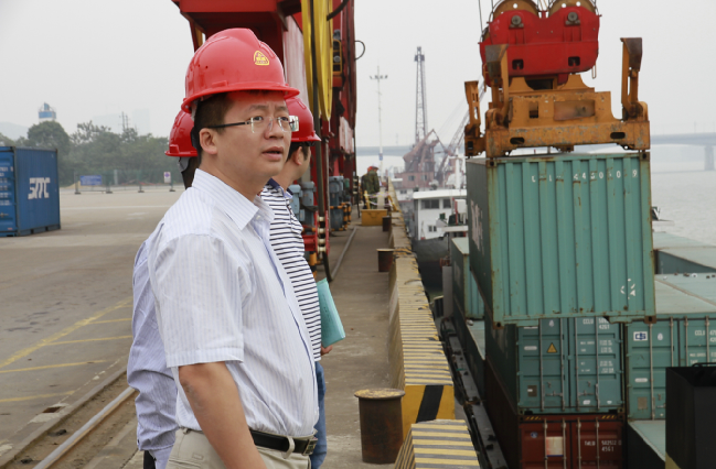 會前,調研領導對長沙港集裝箱碼頭及件雜散貨碼頭進行了實地考察。
