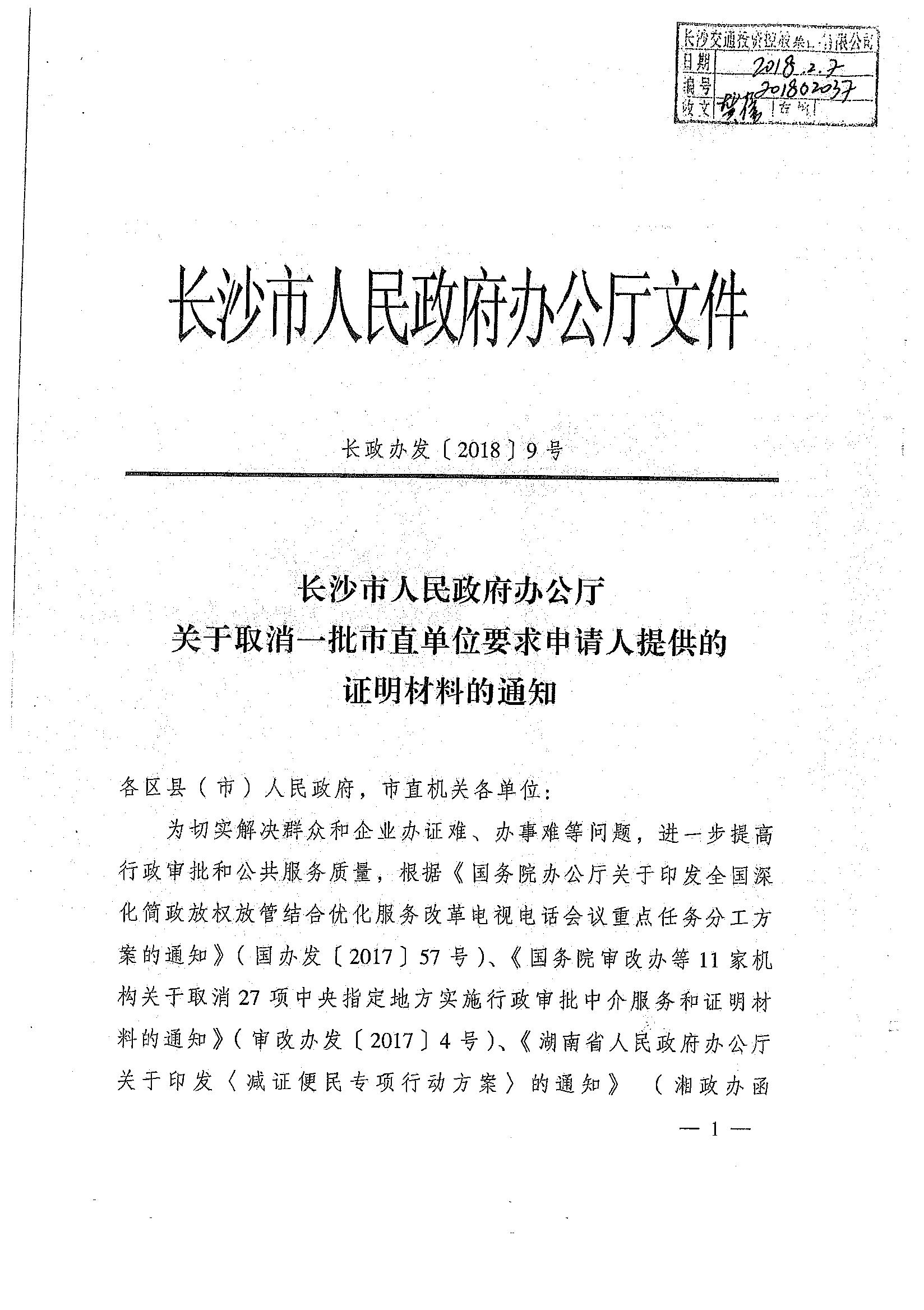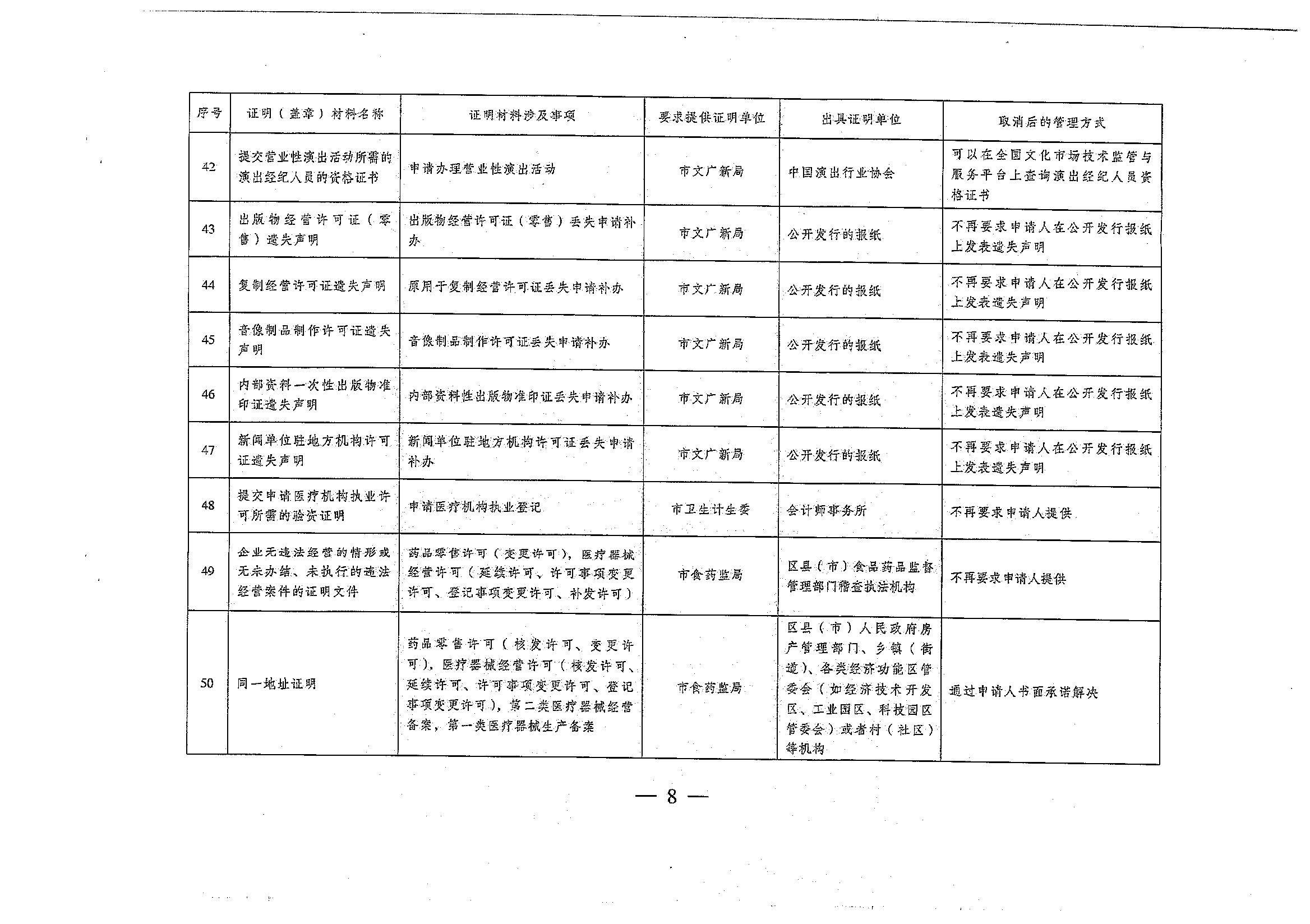 關于取消一批市直單位要求申請人提供的證明材料的通知