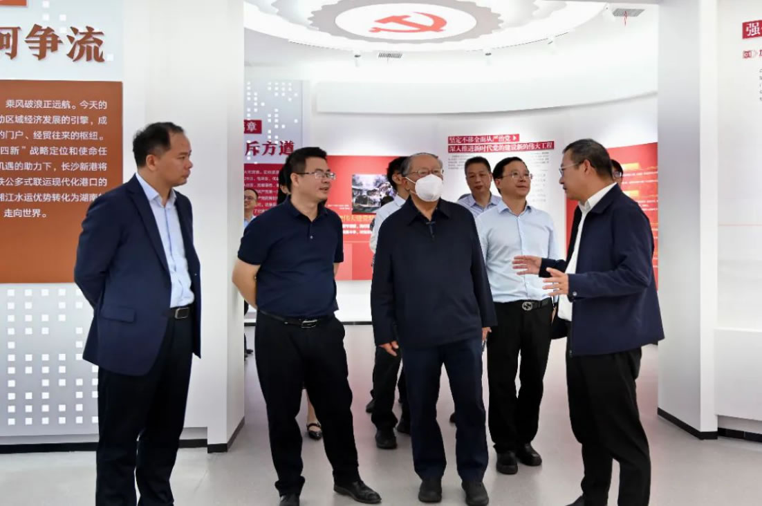 10月31日,原交通部部長、交通運輸部調研組專家委員會主任黃鎮東率《中國港口史》編撰組一行調研長交集團長沙新港。湖南省交通運輸廳黨組成員、副廳長周自榮,長沙市交通局黨組書記、局長喻志軍,長交集團黨委委員、監事會主席羅許全,新港公司黨委副書記、董事、總經理辛華參加調研活動。