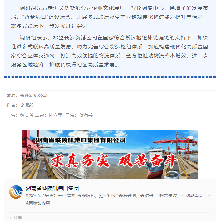 (此稿件轉(zhuǎn)自湖南省城陵磯港口集團有限公司公眾號)