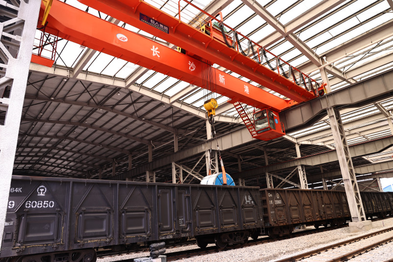 長沙新港專用鐵路正在裝卸作業。 均為長沙晚報全媒體記者 王志偉 通訊員 金添毅 攝 2月4日,一列由婁底漣鋼生產的工業鋼材共80車經鐵路運輸至長沙新港,從碼頭裝船發運至上海,當天運量達到4500噸。2023年,長沙首條疏港專用鐵路在長沙新港正式通車運營,實現了港口鐵路與京廣線國鐵干線的無縫銜接,打通了長沙水鐵聯運“最后一公里”,多式聯運降低了企業運輸成本,深受市場歡迎。數據顯示,長沙新港專用鐵路運營至今,共到發車數超3.1萬車,貨物運量超186萬噸。