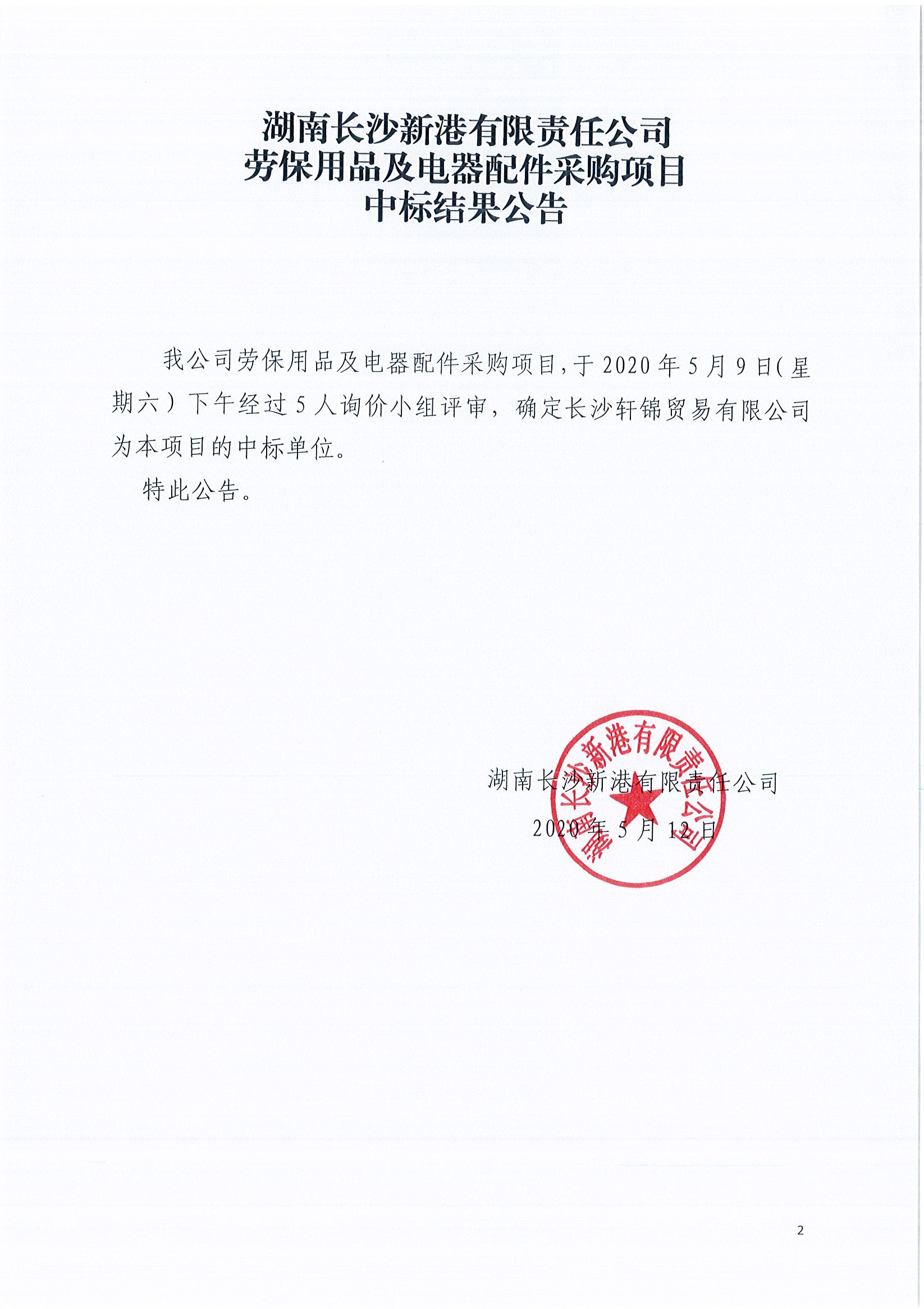 勞保用品及電器配件采購項目《中標(biāo)結(jié)果公告》