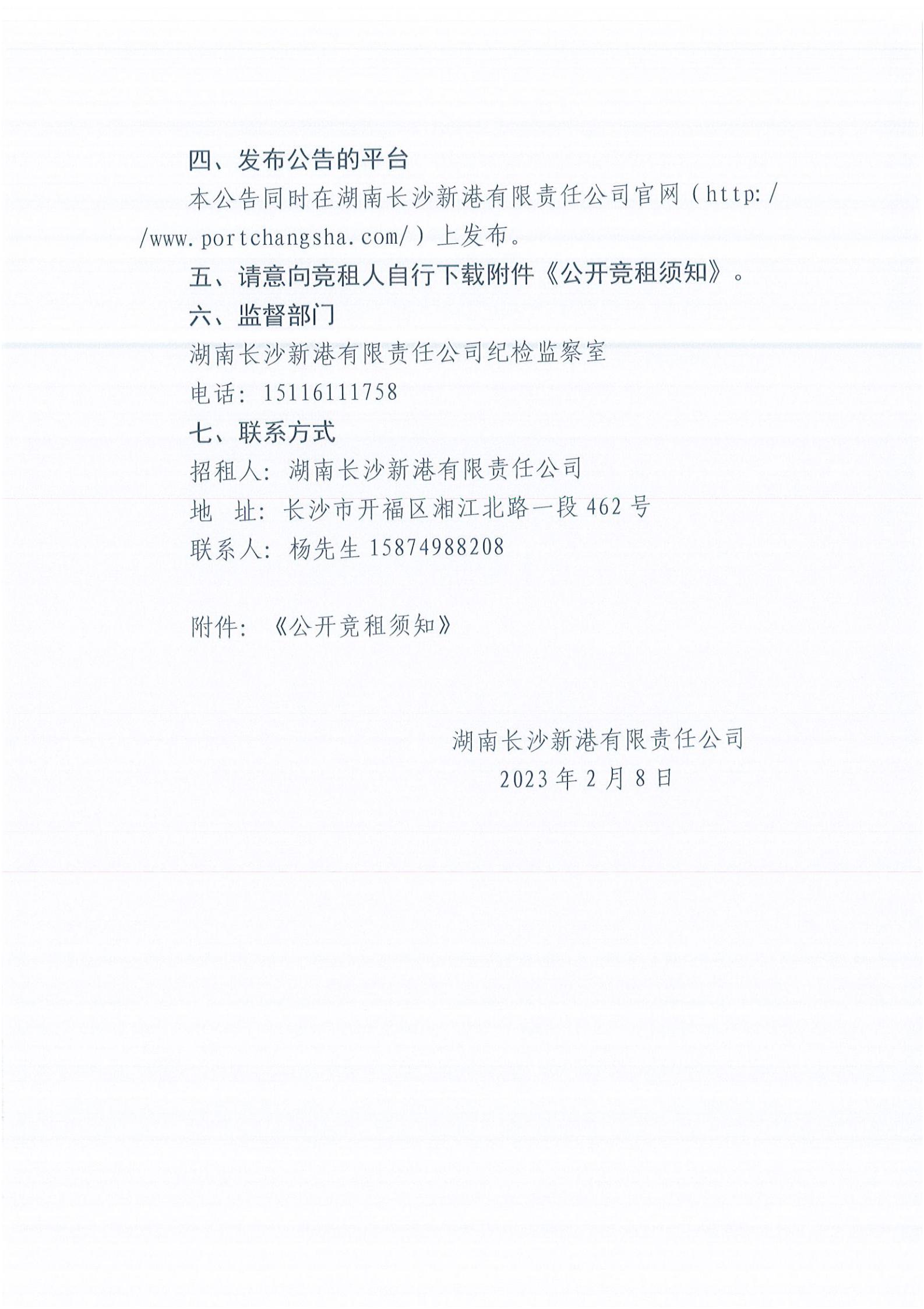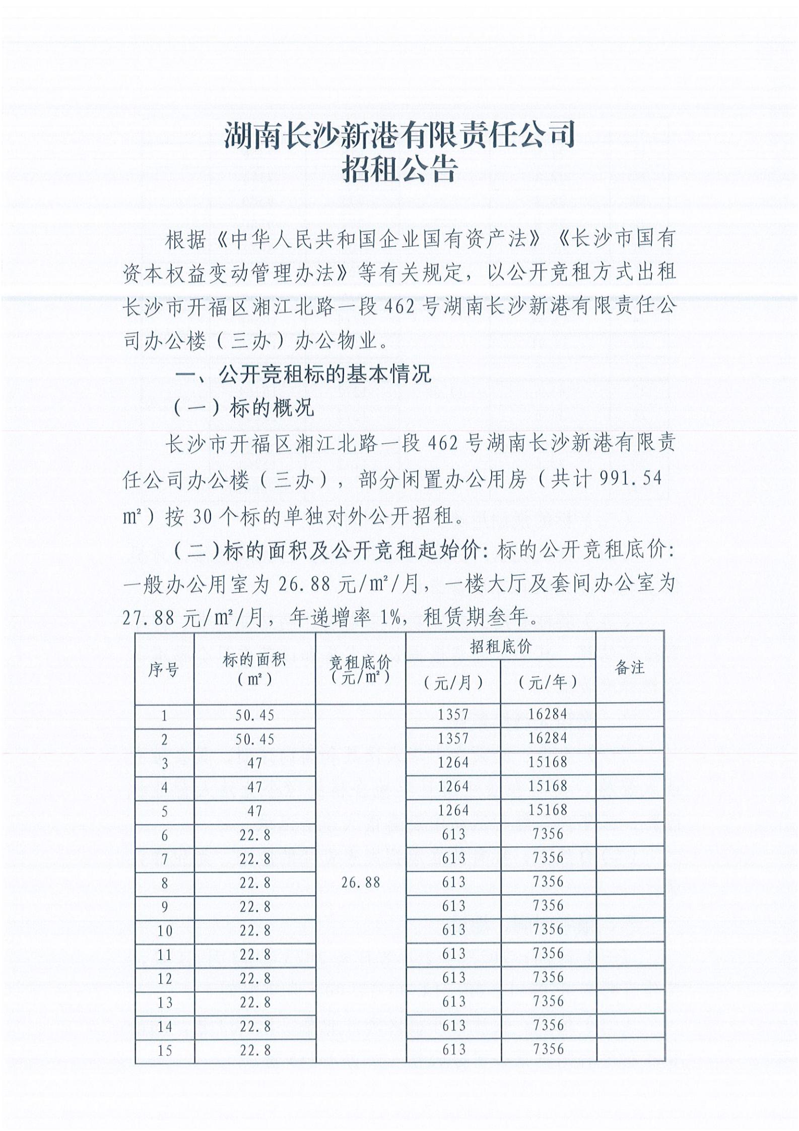 湖南長沙新港有限責(zé)任公司招租公告