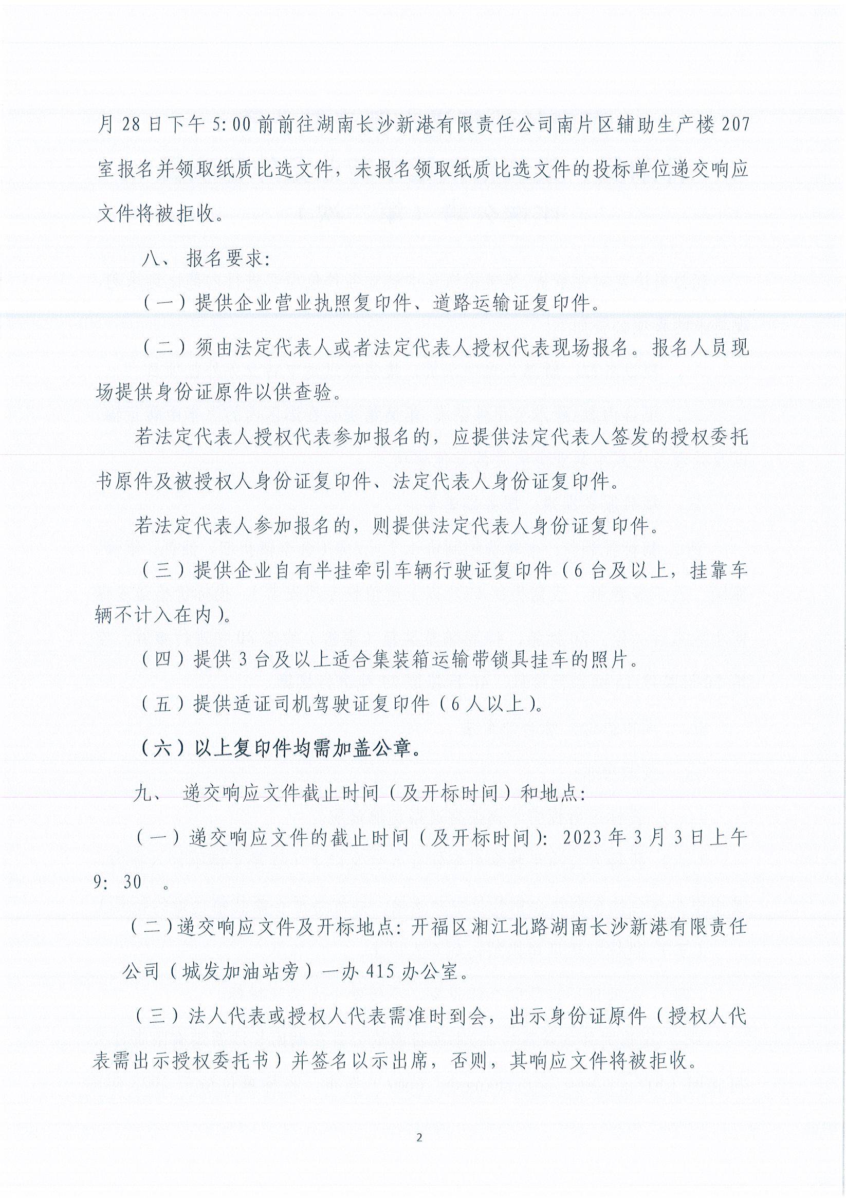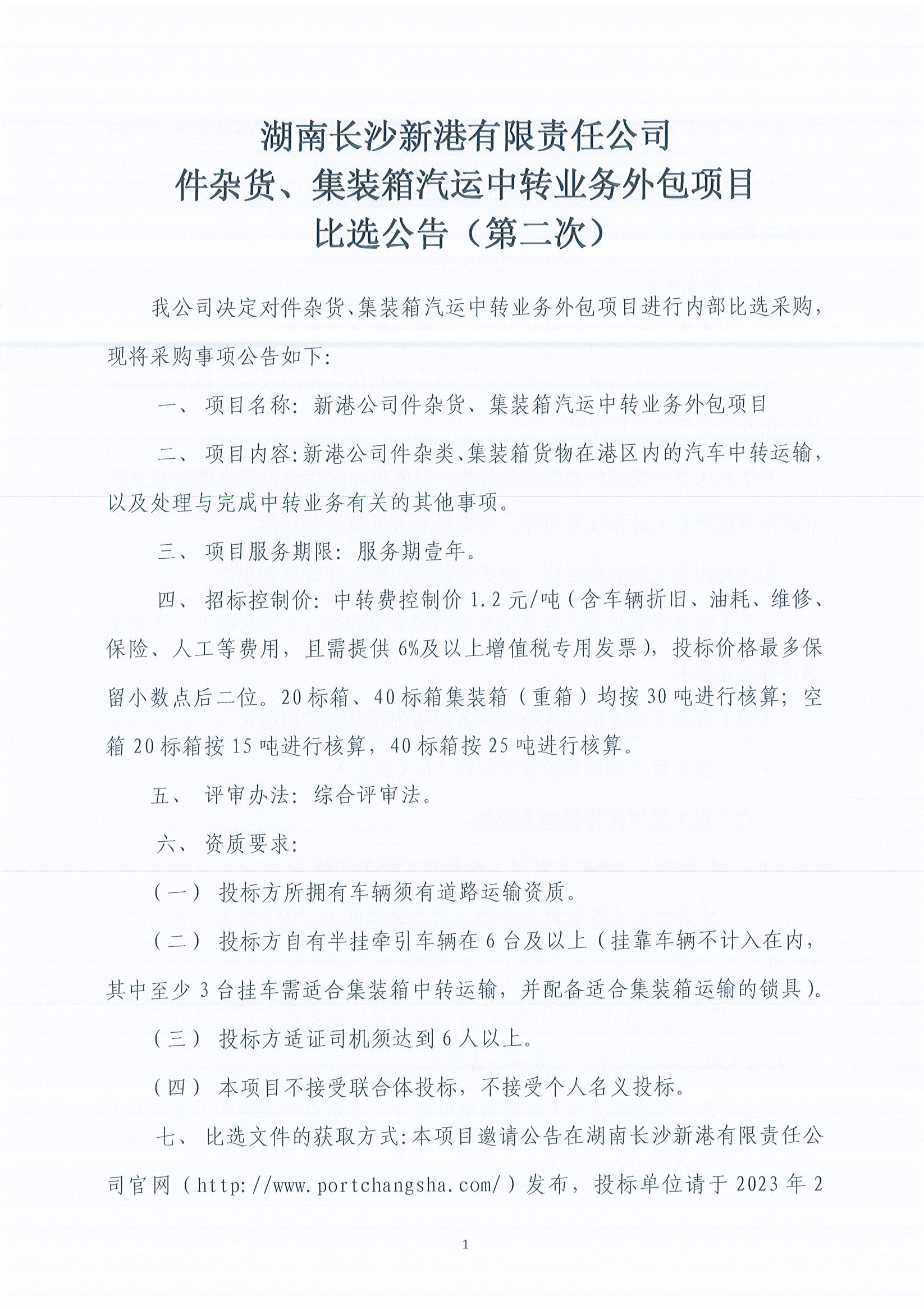 件雜貨、集裝箱汽運中轉業務外包項目比選公告(第二次)