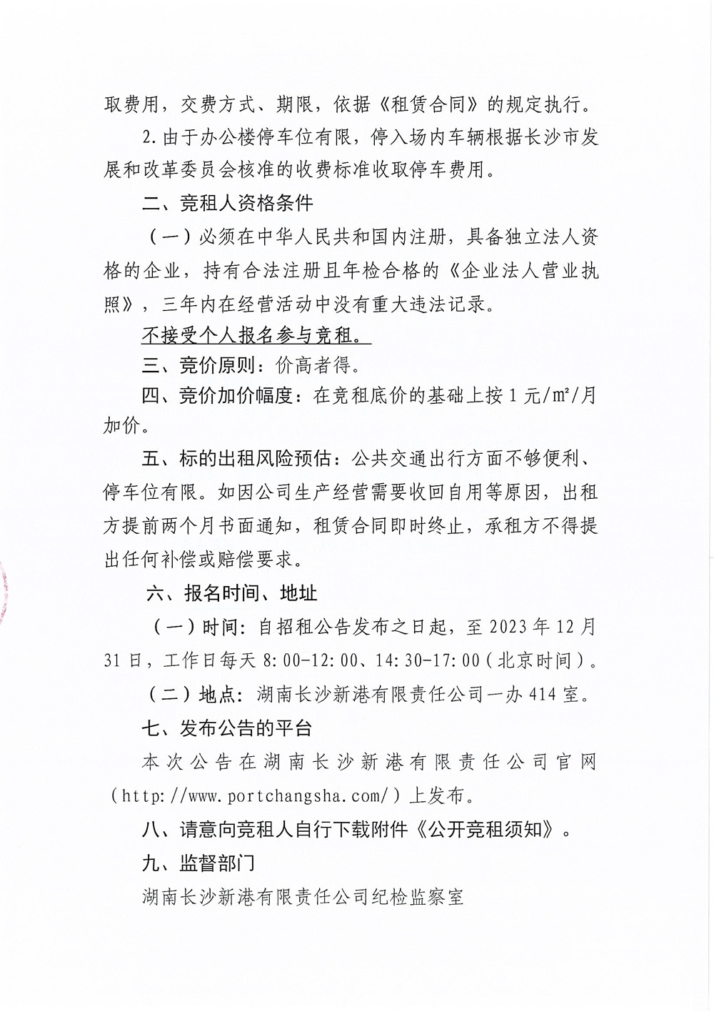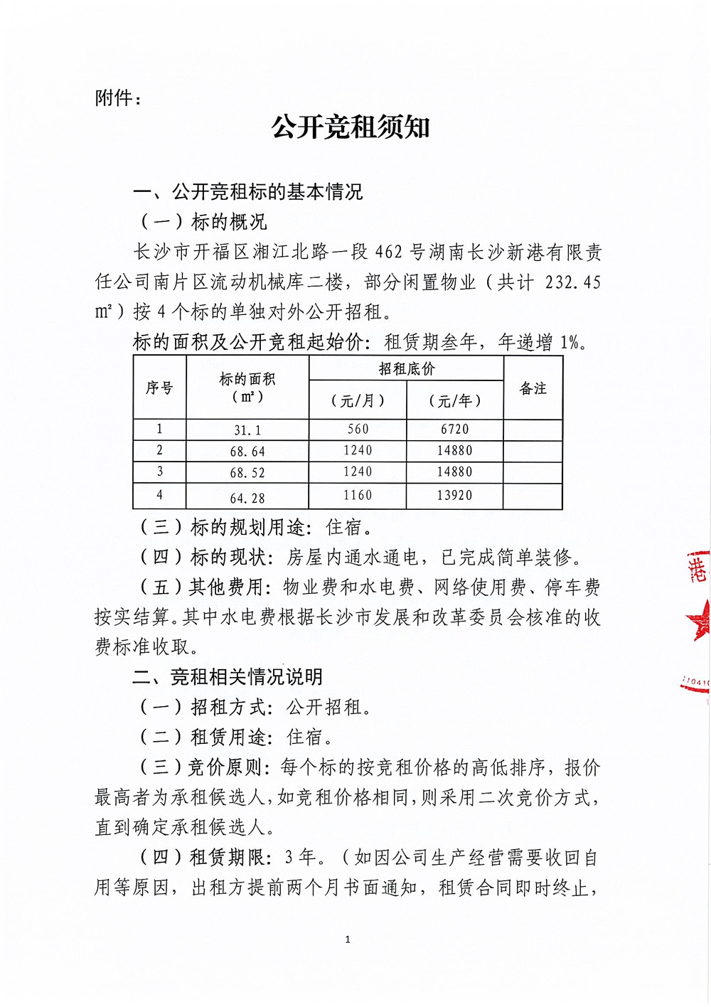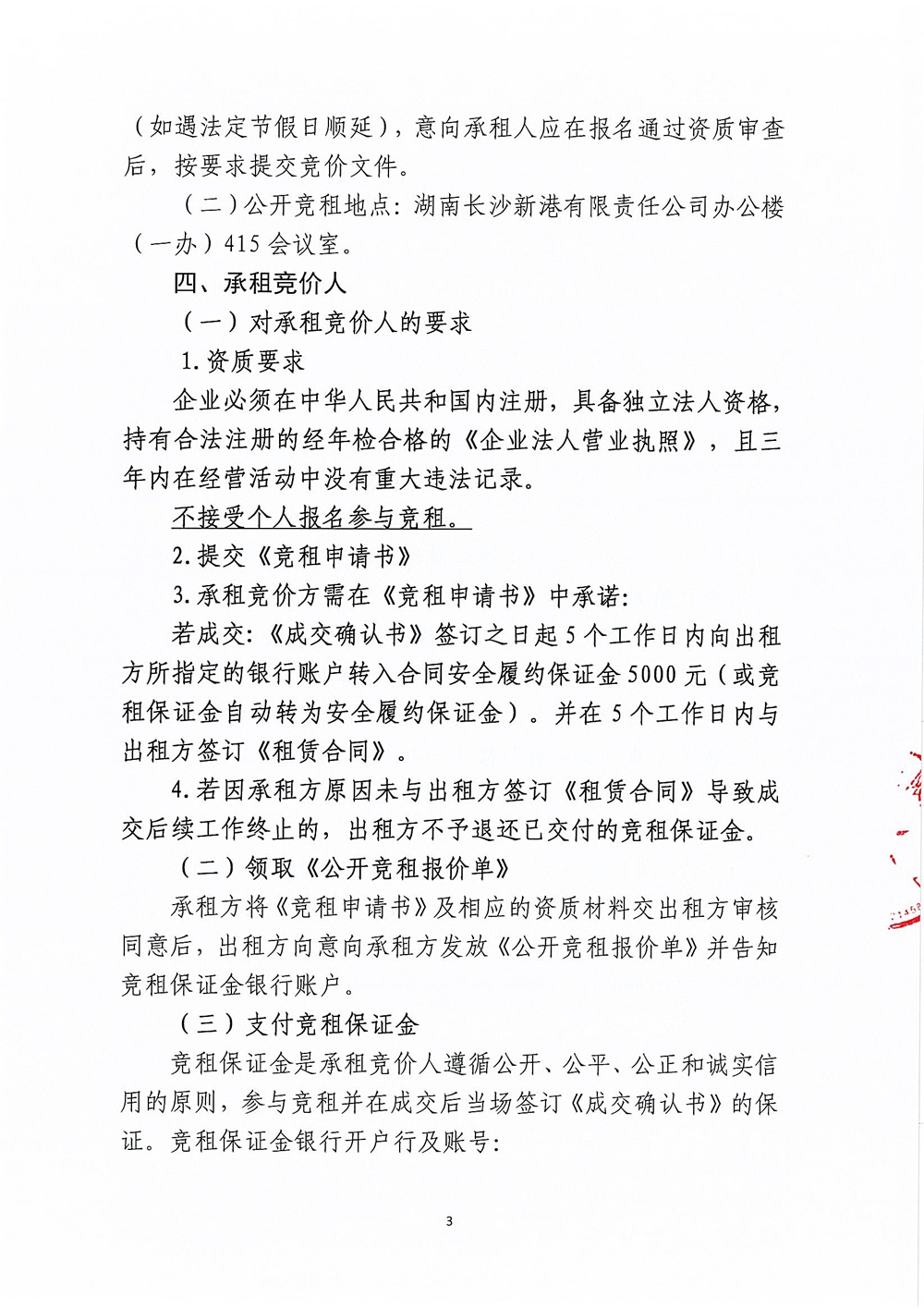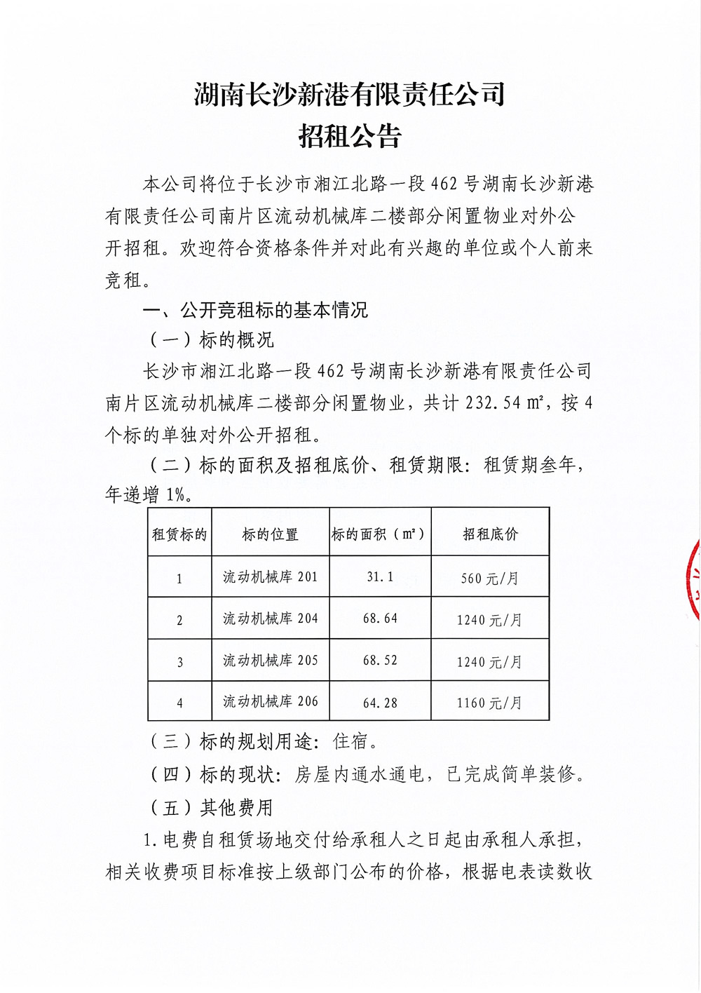 湖南長(zhǎng)沙新港有限責(zé)任公司招租公告