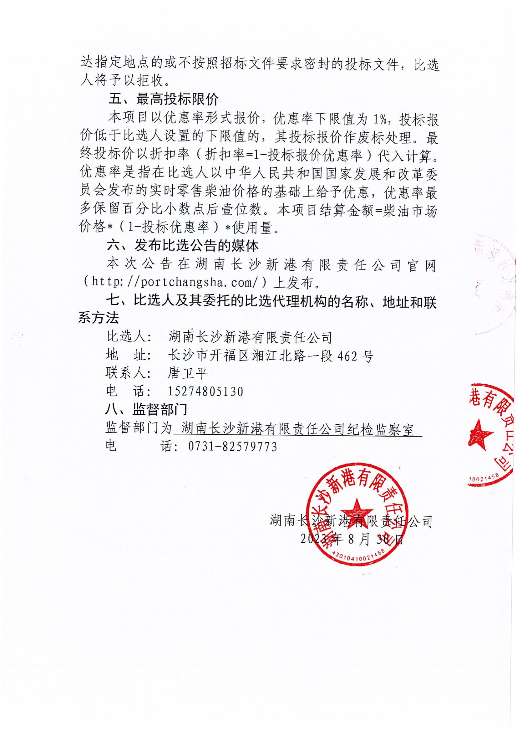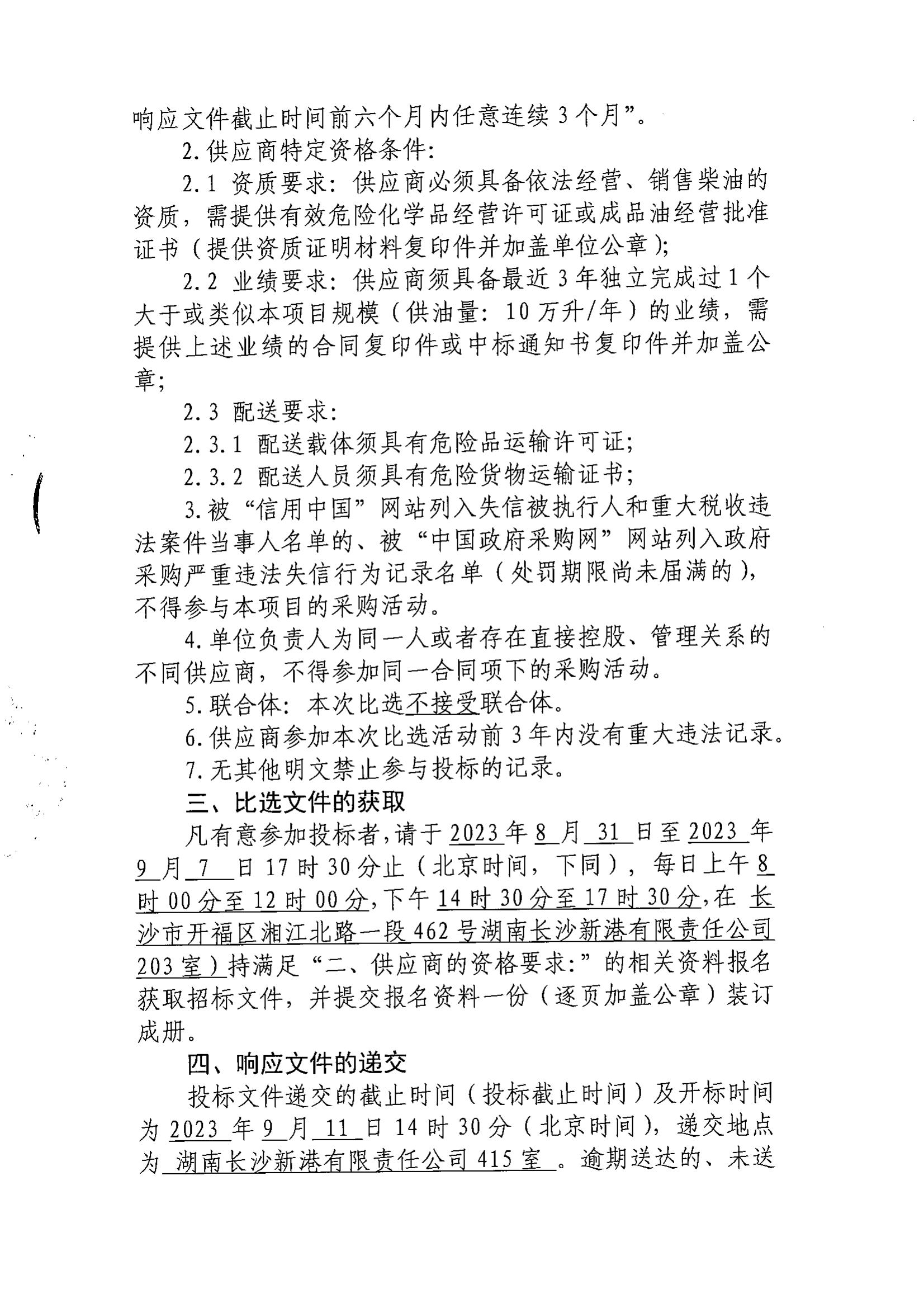湖南長(zhǎng)沙新港有限責(zé)任公司年度柴油采購(gòu)項(xiàng)目比選公告