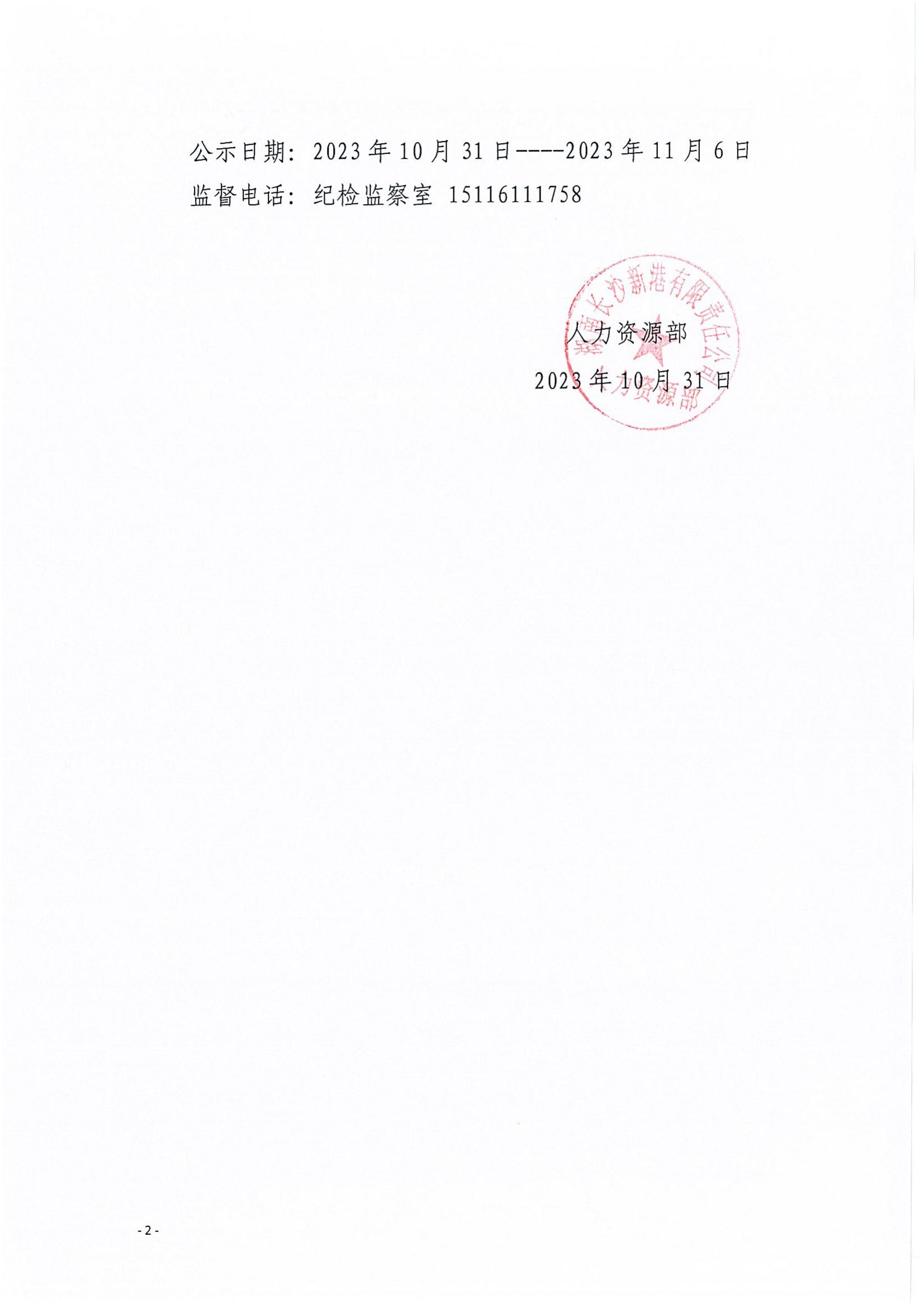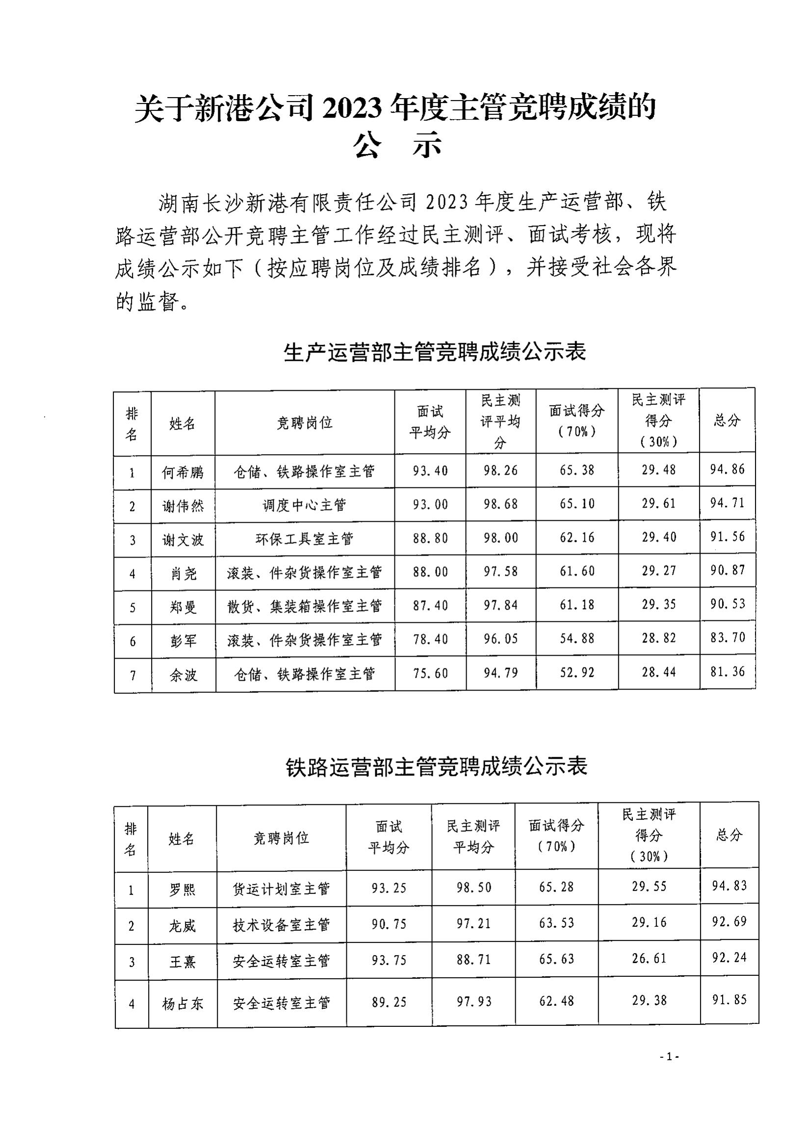 關(guān)于新港公司2023年度主管競聘成績的公示