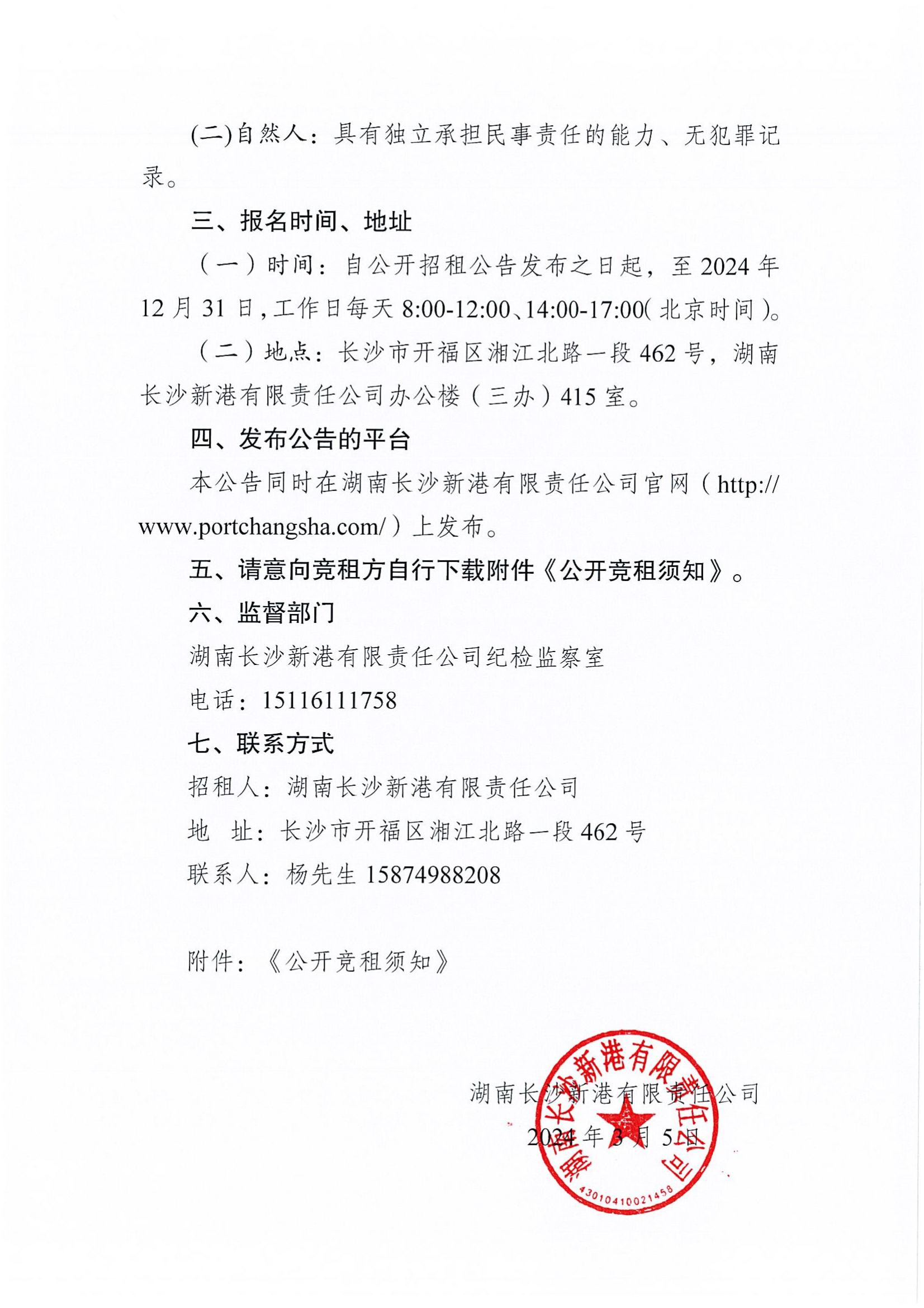 湖南長(zhǎng)沙新港有限責(zé)任公司招租公告