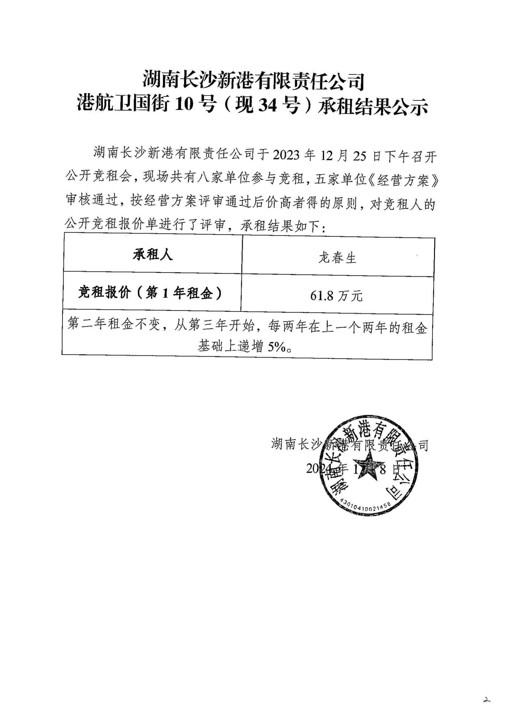 港航衛國街10號(現34號)承租結果公示