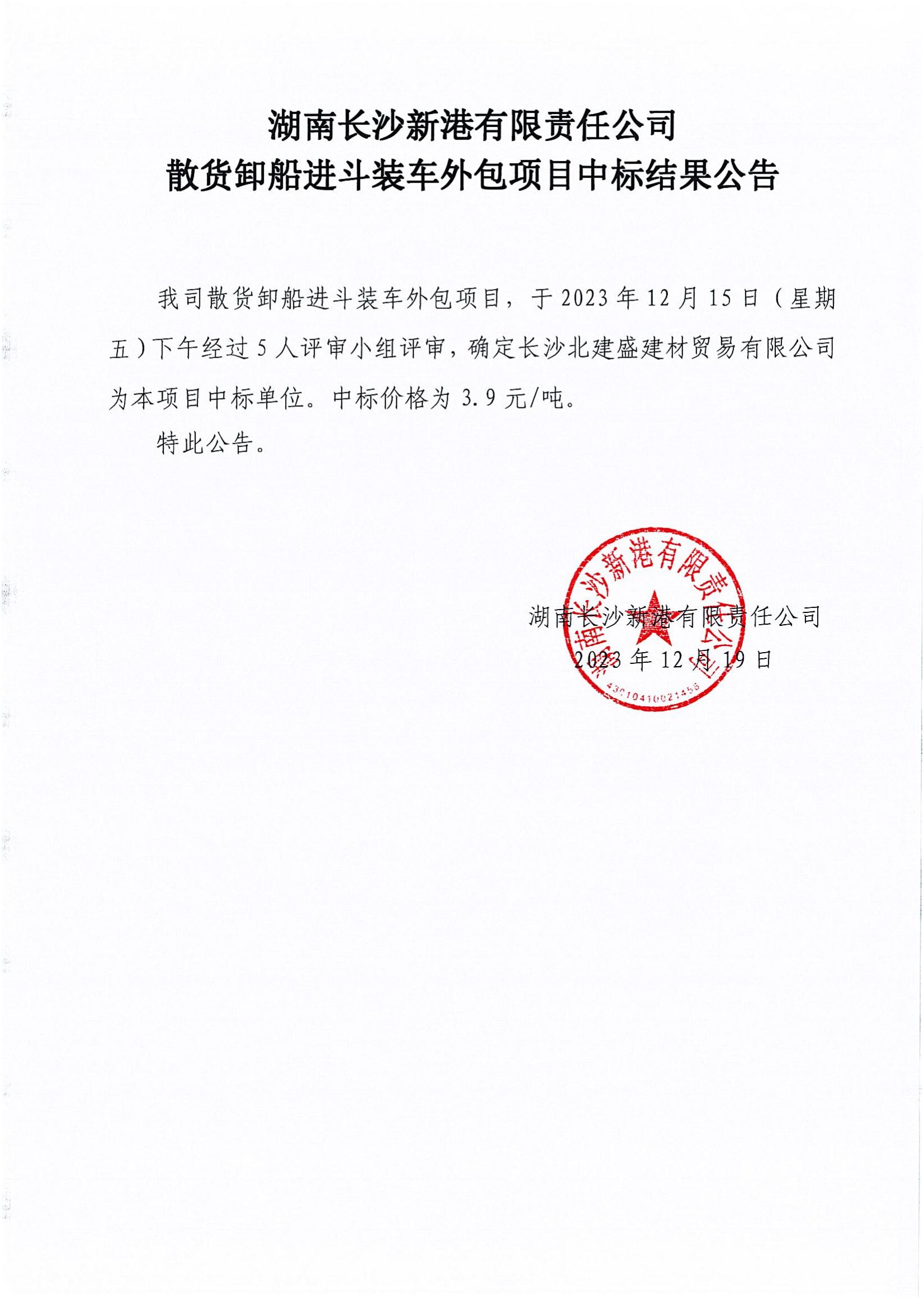 長(zhǎng)沙新港散貨卸船進(jìn)斗裝車(chē)外包項(xiàng)目中標(biāo)結(jié)果公示