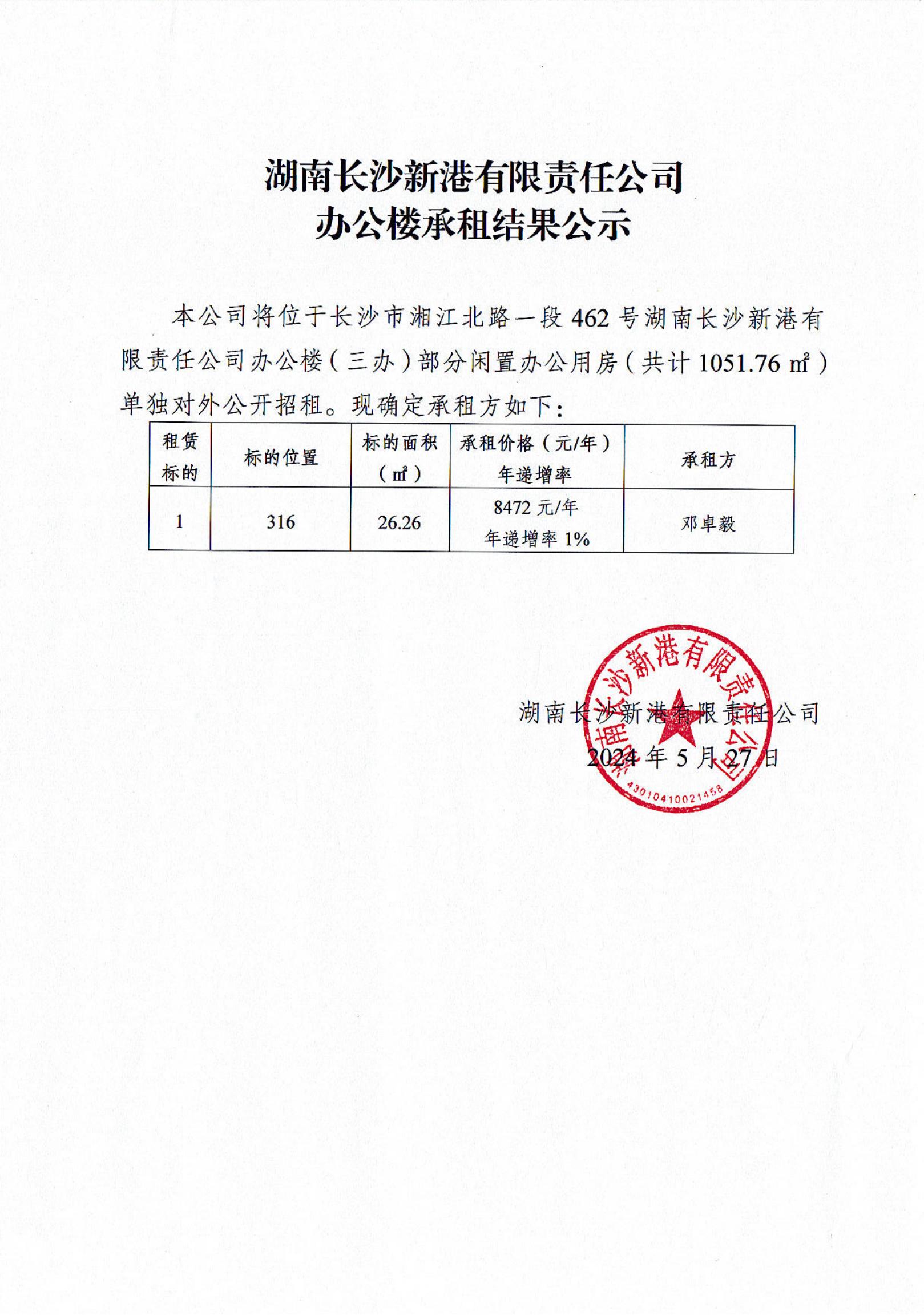 湖南長沙新港有限責任公司辦公樓承租結果公示